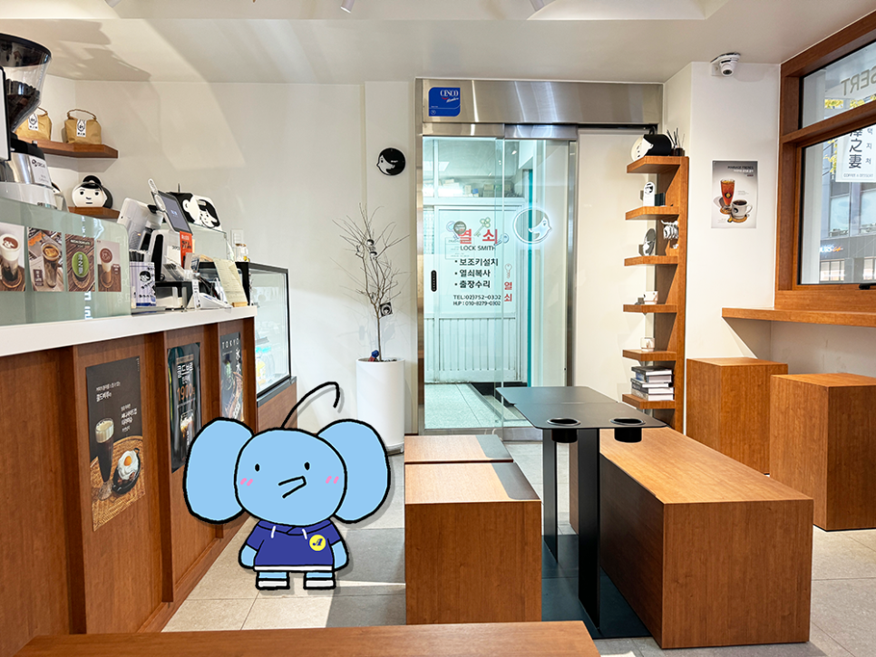 커피점의 상징으로 내건 캐릭터(옛날 7080 국딩 교과서 '영희' 얼굴 같은)가 독특해서 한 번 들러보게 됐습니다.