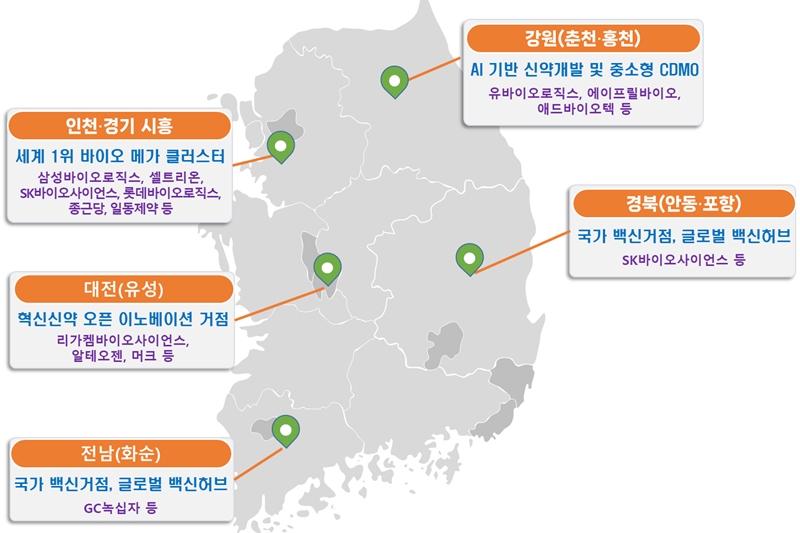 이에 따라 2024년부터 아래 그림처럼 '바이오 분야 국가첨단전략산업 특화단지' 5곳을 지정해 운영하기로 결정했는데요.