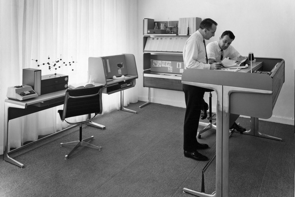 20세기 초반 이 문제를 단번에 해결한 것은 바로 우리 모두가 알고 있는 파티션이었습니다. 때는 1967년, 미국의 디자이너 로버트 프롭스트Robert Propst는 ‘액션 오피스’라는 이름으로, 각 사무원에게 자기만의 공간과 칸막이를 제공하는 새로운 형태의 인테리어를 시도합니다.